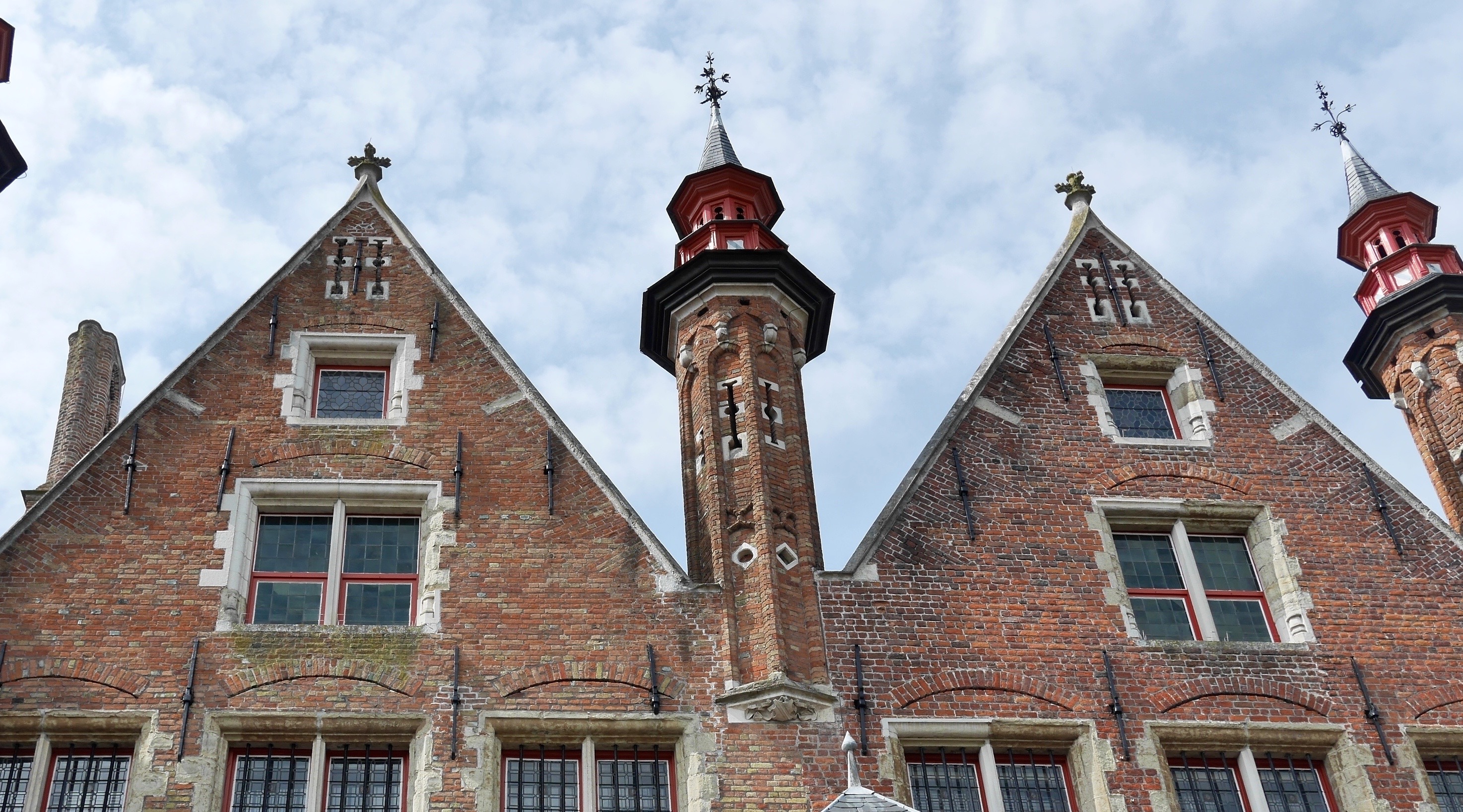 Ir a Brujas y pasear por sus canales en una pequeña embarcación parece actividad obligada para cualquier turista que se precie; pues bien, realizando esta acción me encontré con este par de casas, perfectas copias una de la otra. Me encantan el color de los ladrillos, el acabado de sus ventanas y el refuerzo de sus paredes con los tirantes de hierro. Puesto aparte merecen sus torres, tan esbeltas y delicadas, un conjunto muy armonioso, al lado de uno de sus canales; todo un lujo del pasado.