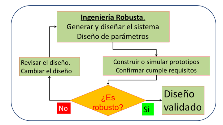El flujo del proceso de desarrollo tiene que incluir el diseño de parámetros que haga al sistema ser robusto contra las causas de variación, controladas o no controladas, causas que le afectarán en su vida útil y permiten el incumplimiento de las especificaciones.
